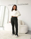 Leggings negro bota recta clásico sin abertura, en lycra suplex, gruesa y sin transparencias, tiro medio control abdomen.